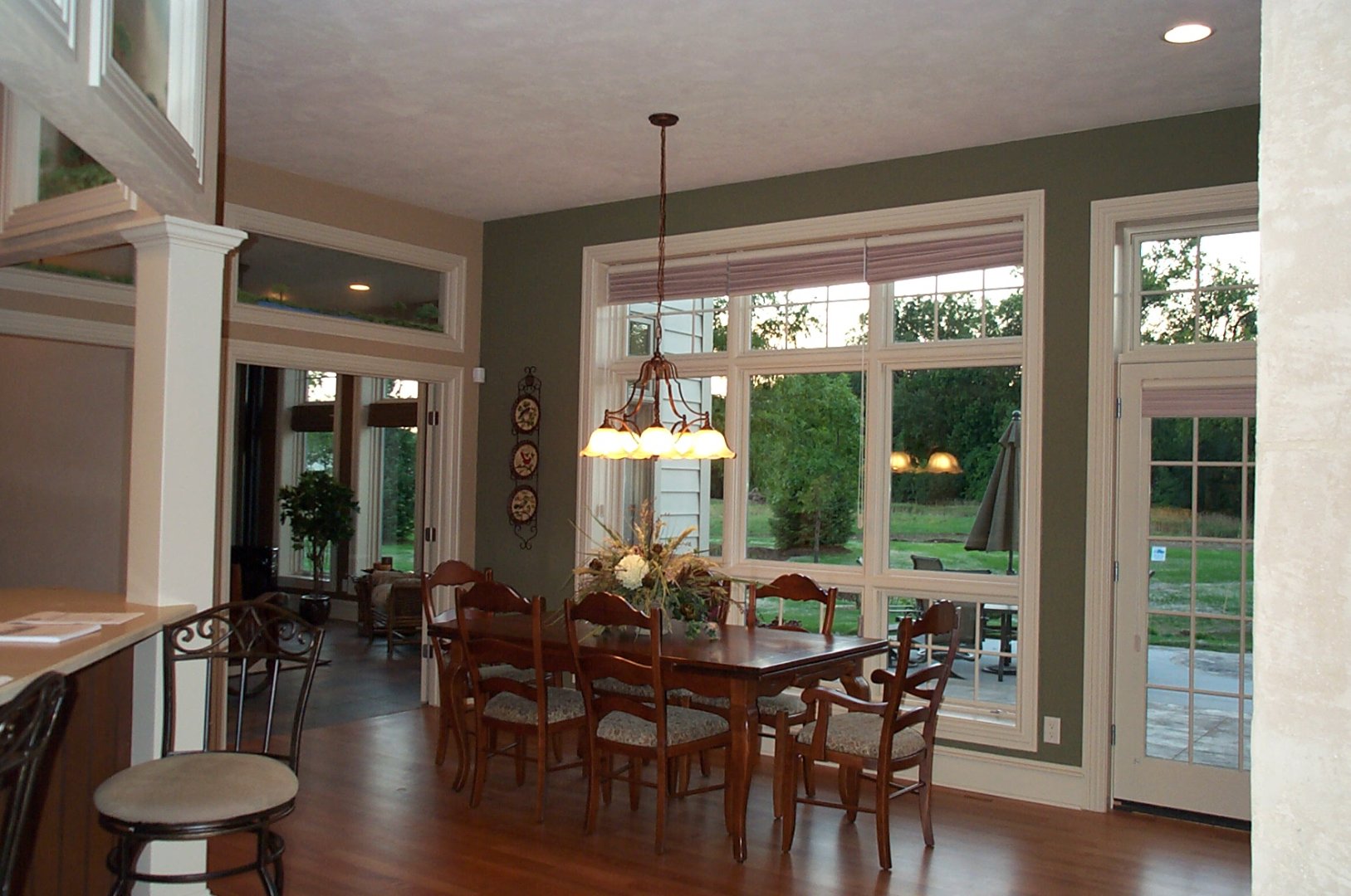 The nice thing about building a new home is you not only get to decide what goes into it, but you get to decide where it’s going to be. This home was designed to take advantage of a beautiful back yard view that included a pond. The living room, dining area, family room and master suite all have rear-facing windows.